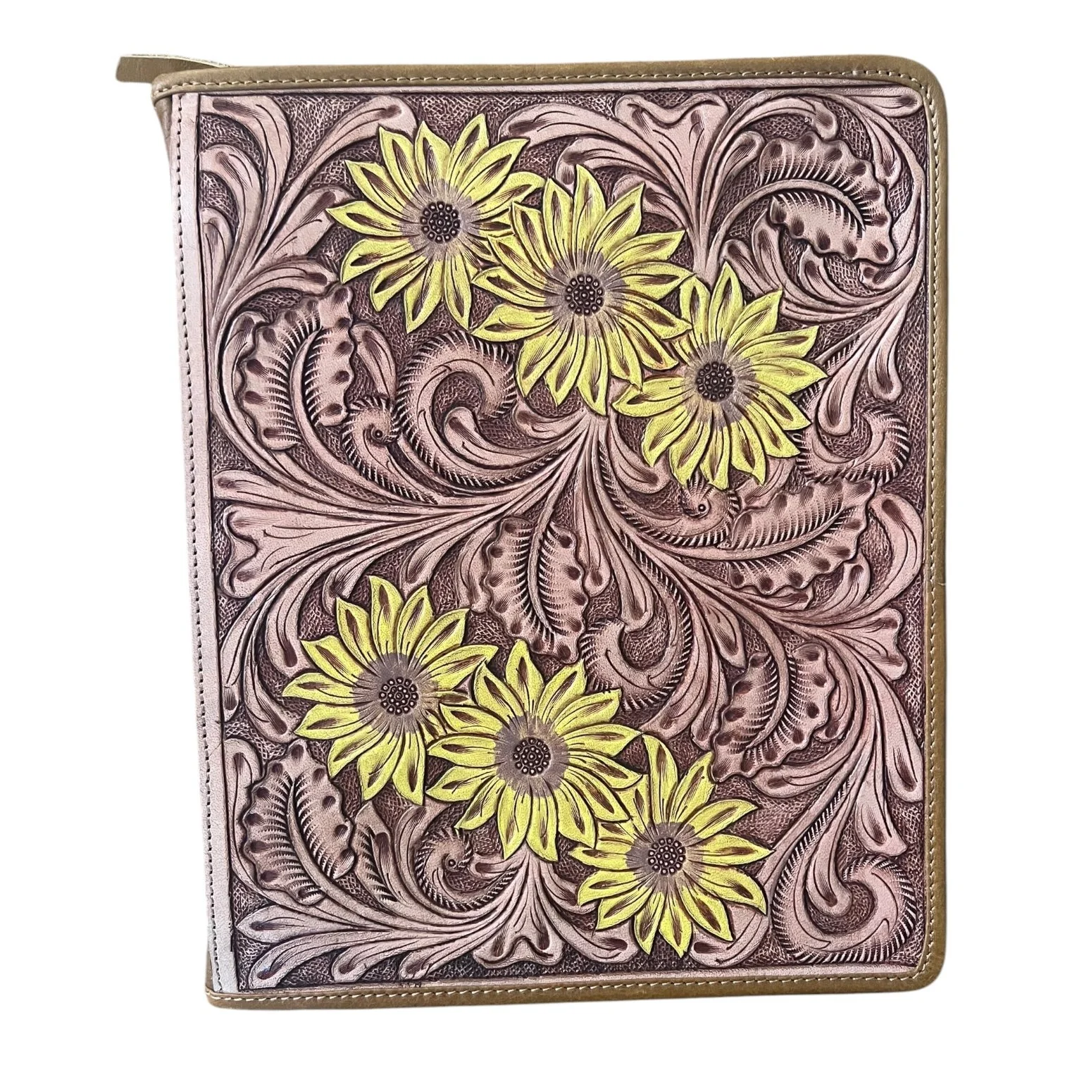 Tooled Sunflower Cowhide Binder